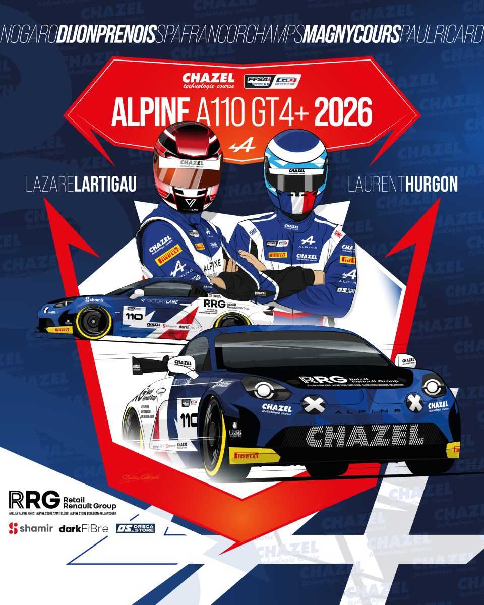 Chazel Technologie Course sera bien présent sur la grille du Championnat de France FFSA GT. En 2026, la formation gardoise roulera dans la catégorie Pro-Am avec une Alpine A110 GT4+ confiée à Laurent Hurgon et Lazare Lartigau.